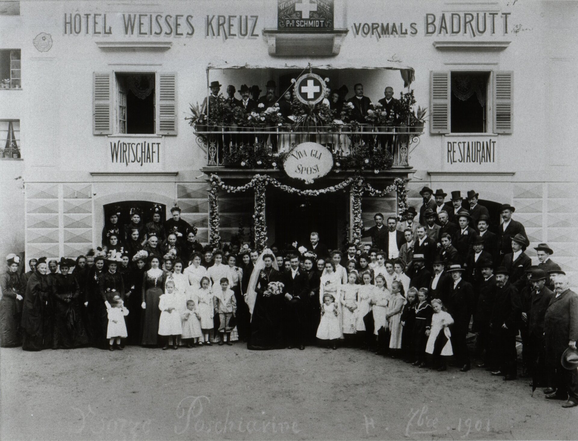Dopo un periodo di frequenti cambi di gestione, l’hotel fu acquistato dall’albergatore Mathias Schmid di Pontresina, che lo rinominò Hotel Weisses Kreuz. Successivamente, Domenico Pitschen, marito di Edina Schmid, ne assunse la gestione fino alla morte nel 1932. Edina proseguì con l'aiuto di Fredy Klein, un avvocato arrivato a Poschiavo nel 1937 con la moglie Marilli. Dopo la morte di Fredy nel 1953, Edina continuò a gestire l’hotel con la vedova Klein. Dopo la sua scomparsa nel 1956, fu Marilli a occuparsene fino al 1979.